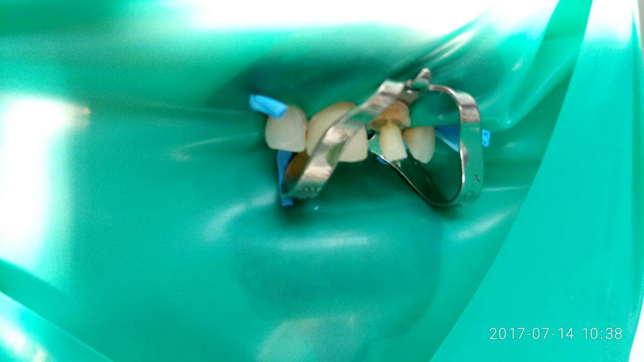 Лечение вторичного кариеса возникшего под ранее установленной пломбой 1.1 зуб, которая выпала в следствии размягчения дентина, восстановление анатомической особенности зуба.
