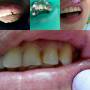 Перелечивание 3.2, 3.1 каналов зубов, внутриканальное отбеливание 3.1 зуба, фиксация стекловолоконных шрифтов, эстетическая реставрация.